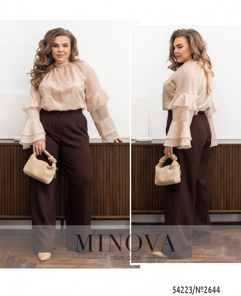 66-68 р-р: довжина блузки 68см, довжина рукава від горловини 75см, обхват рукава 54см, ОГ - 152см, ОТ -152см, OC -156см.