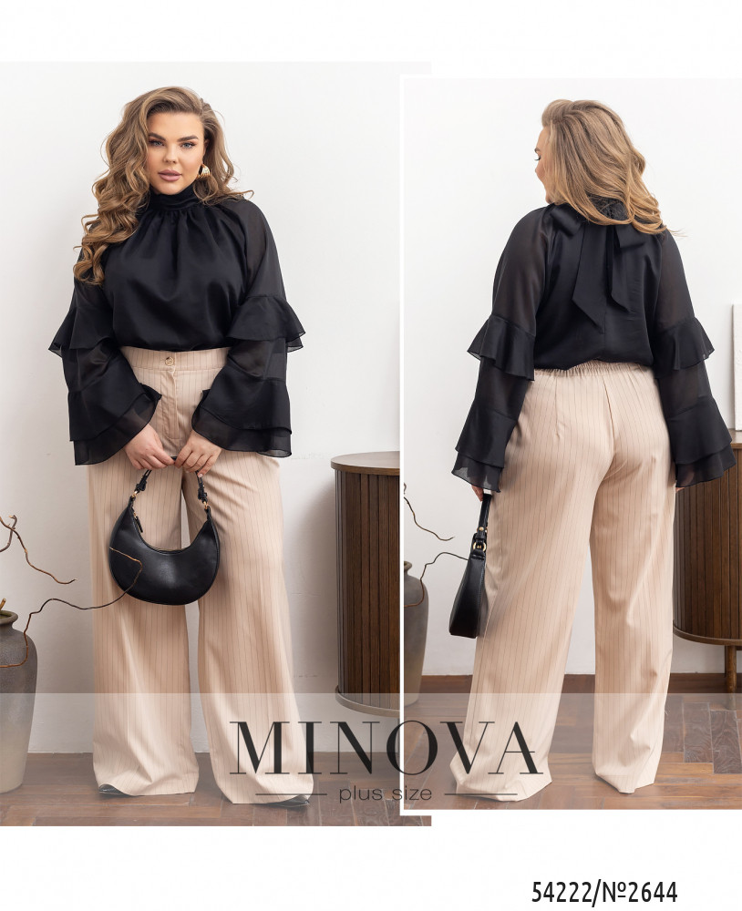 66-68 р-р: довжина блузки 68см, довжина рукава від горловини 75см, обхват рукава 54см, ОГ - 152см, ОТ -152см, OC -156см.