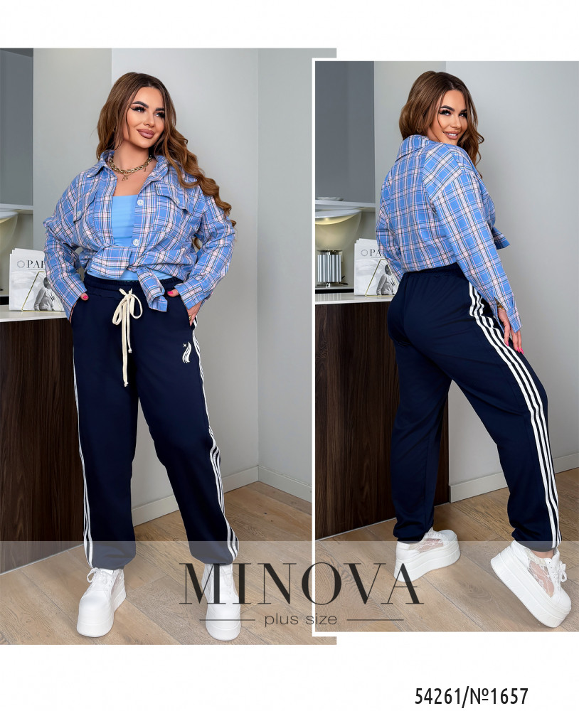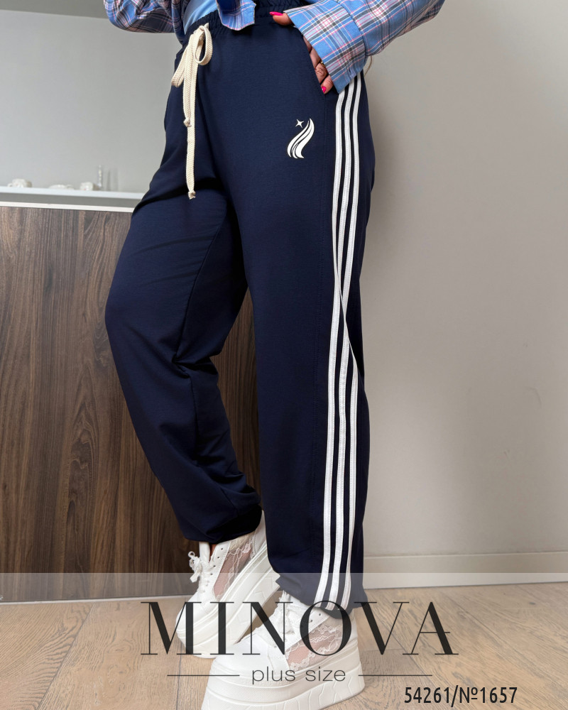 54-56 р-р: довжина брюк по внутрішньому шву 78см, довжина брюк по зовнішньому шву з урахуванням пояса 104см, ОТ - 80-118см, ОС - 122см.