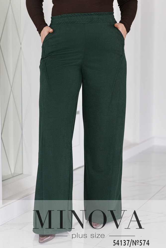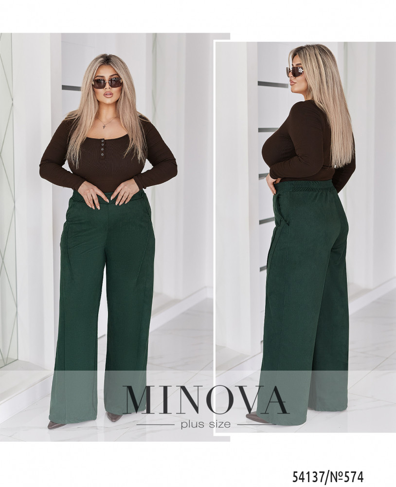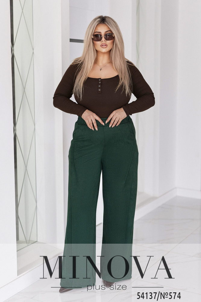 58-60 р-р: довжина брюк по внутрішньому шву 80см, довжина брюк по зовнішньому шву з урахуванням пояса 112см, ОТ - 90-124см, ОС - 130см.