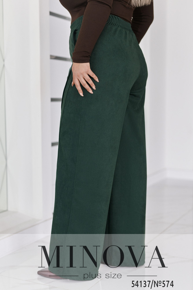 54-56 р-р: довжина брюк по внутрішньому шву 110см, довжина брюк по зовнішньому шву з урахуванням пояса 80см, ОТ - 84-116см, ОС - 122см.