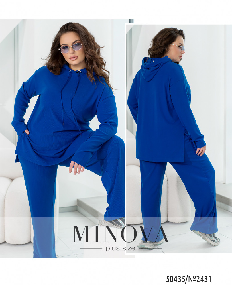 Легкий костюм-двійка, виконаний з м’якої та теплої тканини, відмінно поєднується з кросівками і великими джинсовими куртками. До його складу входить кофта крою oversize зі светром з довгими рукавами і капюшоном, а також актуальні штани-палаццо вільного крою з кишенями на резинці, вшитій по лінії талії.