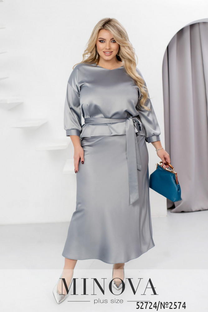 Елегантний святковий костюм зі спідницею, створений із розкішного костюмного шовку, стане вашим ідеальним образом для новорічних свят. Він поєднує витонченість і комфорт, роблячи вас зіркою будь-якої святкової події. Блуза з V-подібним вирізом створює акцент на зоні декольте, додаючи образу жіночності. Спущена лінія плечей та рукави довжиною 3/4 з манжетами на ґудзиках забезпечують стильний вигляд і зручність. Довга спідниця на резинці комфортно сідає по фігурі, а текстильний пояс, що входить до комплекту, дозволяє підкреслити талію та додає завершеності образу. Цей костюм створений, щоб ви відчували себе впевнено й виглядали розкішно під час зустрічі Нового року чи будь-якого іншого особливого заходу.