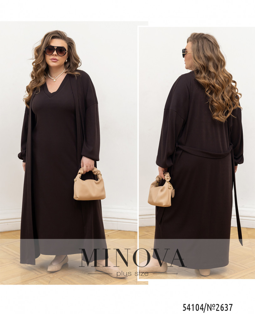 Комплект, у якому поєднуються стиль і максимальний комфорт.Максі-сукня прямого крою красиво витягує силует і м’яко підкреслює фігуру. Еластичний трикотаж у рубчик приємний до тіла, добре тягнеться та тримає форму. Довгий кардиган із поясом дозволяє зробити акцент на талії, має зручні кишені та акуратні манжети на рукавах — деталь, що додає завершеності образу. Ідеальний варіант на щодень: змінюєш взуття й настрій — і комплект звучить по-новому