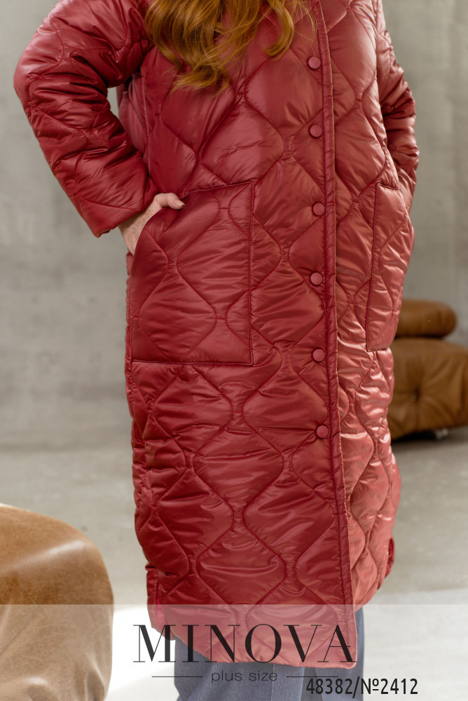 Довга стьобана куртка з пришивним капюшоном, високим коміром і довгими рукавами. Такий варіант курток майорить на стильних фешн показах вже другий рік та досі не втрачає своєї популярності. Куртка застібається на ряд кнопок спереду. Ми додали також накладні кишені на основній частині виробу. Така куртка легко поєднується з будь-якими елементами гардеробу, а також в ній буде однозначно тепло, адже ми додали наповнювач синтепон 200 та силікон. Доповніть образ високими черевиками та сумочкою і сміливо вирушайте у справах.