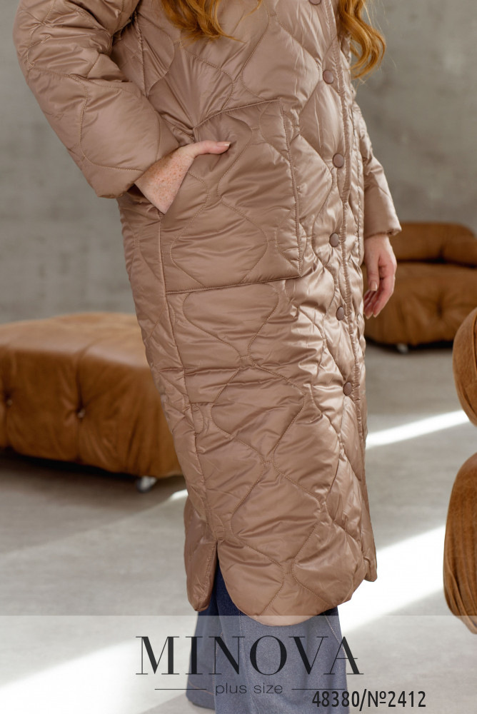 Довга стьобана куртка з пришивним капюшоном, високим коміром і довгими рукавами. Такий варіант курток майорить на стильних фешн показах вже другий рік та досі не втрачає своєї популярності. Куртка застібається на ряд кнопок спереду. Ми додали також накладні кишені на основній частині виробу. Така куртка легко поєднується з будь-якими елементами гардеробу, а також в ній буде однозначно тепло, адже ми додали наповнювач синтепон 200 та силікон. Доповніть образ високими черевиками та сумочкою і сміливо вирушайте у справах.