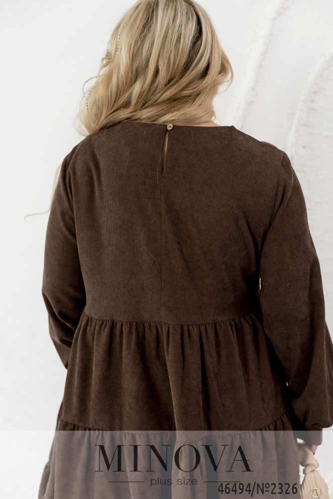 Повітряна сукня А-силуету, виконана з м'якого вельвету, дозволить вам навіть в прохолодну погоду і пору року виглядати жіночно і привабливо. Модель доповнена довгими рукавами з манжетами і застібкою на маленький гудзик під шиєю. Легкий подол, що складається з декількох шарів воланів, зробить ваш образ виразним і незабутнім.