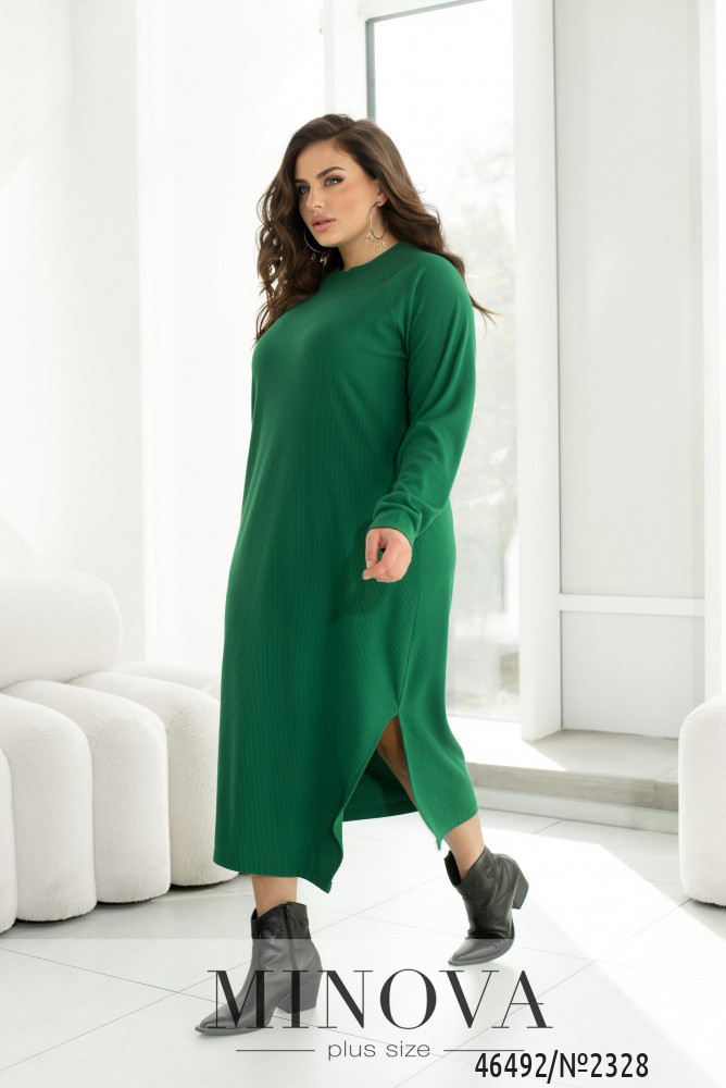 Стильна сукня, виконана з м'якої ангорової тканини, відрізняється універсальністю, а також вдало вписуються в будь-який стиль. Модель лаконічного прямого силуету доповнена довгими рукавами "реглан" з манжетами, а також фігурним вирізом збоку внизу і злегка асиметричним низом, подовженим спереду.