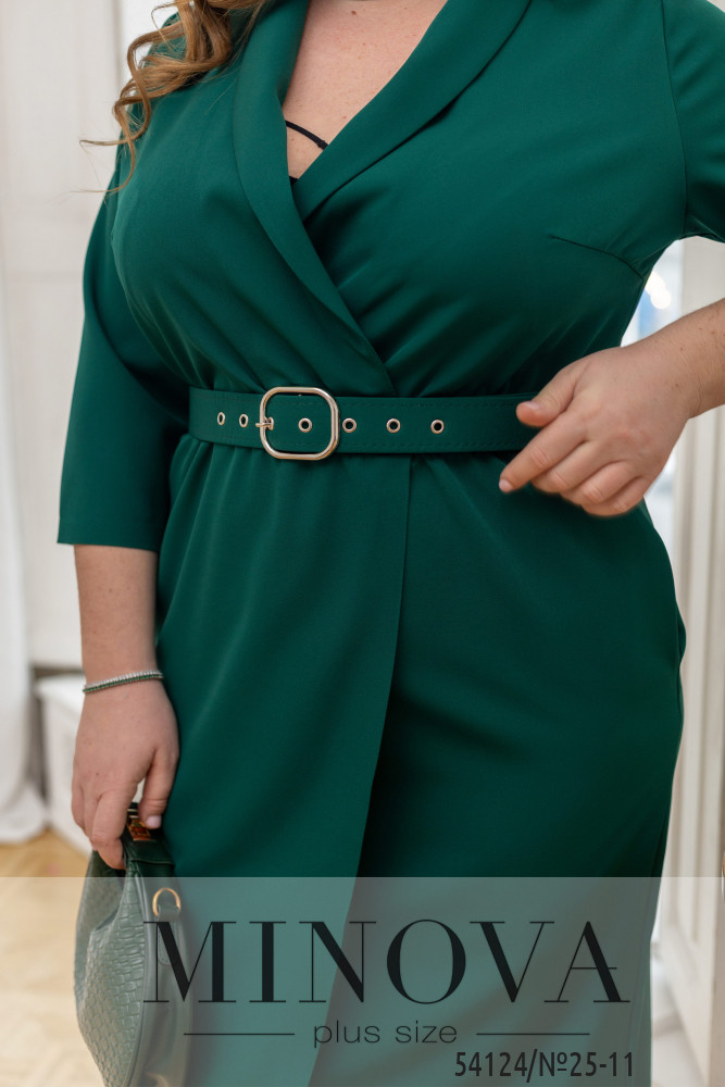 Сукня лаконічного крою, яка легко підлаштовується під твій ритм. Має V-подібний виріз горловини з м’якими лацканами, що красиво витягує силует. Відрізна лінія талії з легкою посадкою забезпечує комфорт і додає жіночності. Рукави довжиною 3/4 роблять образ універсальним — доречно і для роботи, і для подій. У комплекті йде пояс, яким можна підкреслити талію або носити сукню в більш вільному варіанті. Ідеальний вибір, коли хочеться виглядати стримано, елегантно й без зайвих зусиль.