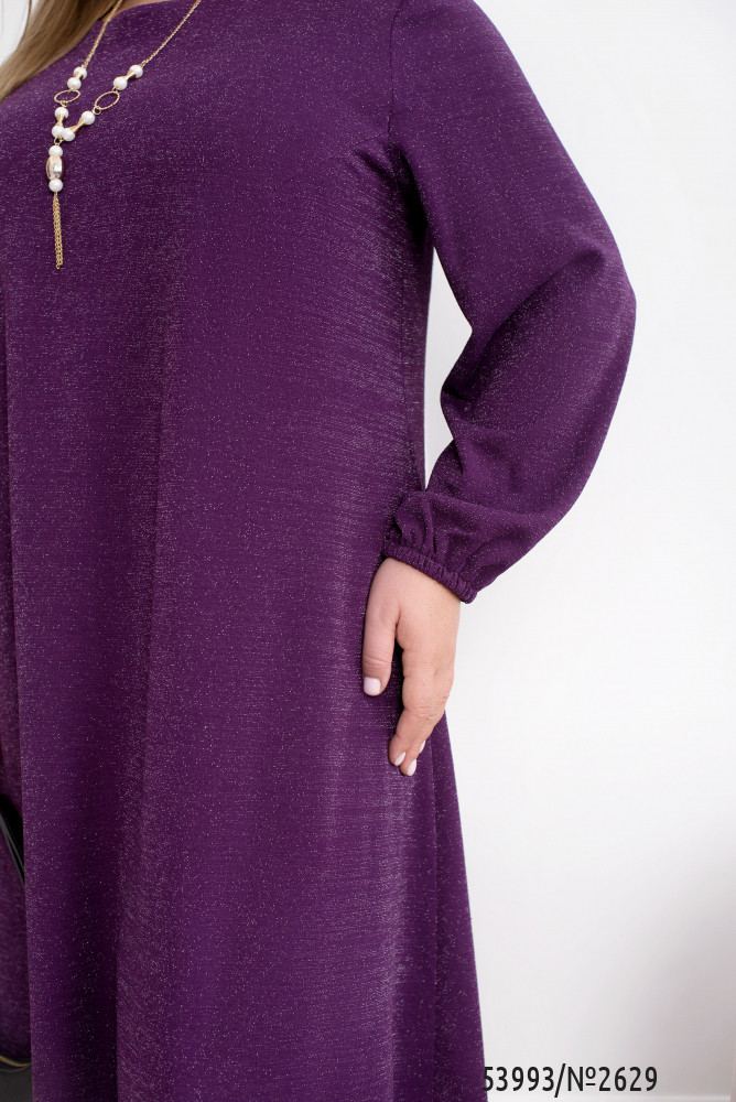 Елегантна та мінімалістична сукня, що зачаровує своїм делікатним блиском люрексу. Модель має напівкруглий широкий виріз горловини, діагональні виточки на грудях, які красиво підкреслюють силует, та зручні кишені у бокових швах. Вільні рукави, зібрані на зап’ястках резинкою без манжетів, додають легкості та жіночності. Без застібок — лише комфорт, блиск і невимушена елегантність у кожному русі.