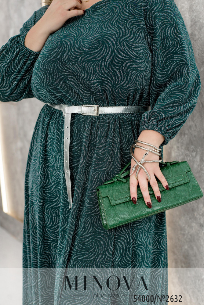 Довга сукня з мерехтливим дизайном — втілення ніжності, жіночності та святкової елегантності. Півкруглий виріз горловини та відрізна лінія талії підкреслюють фігуру, а спадаючі плісовані оборки додають легкості й витонченого руху. Рукави довжиною 3/4 з м’якими резинками на зап’ястках створюють об’єм і делікатний акцент. Вертикальні виточки формують красивий силует, а поясок із комплекту дозволяє обрамити талію, додаючи завершеності образу. Ця сукня м’яко виблискує при кожному русі — ідеальний вибір для особливих моментів, коли хочеться сяяти по-справжньому. Срібний пояс входить в комплект.