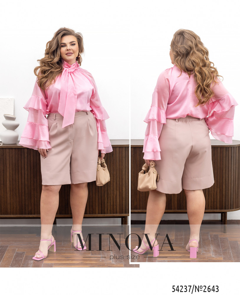 54-56 р-р: довжина шортів по внутрішньому шву 25см, довжина шортів по зовнішньому шву з урахуванням пояса 61см, ОТ - 90104см, ОС - 136см.