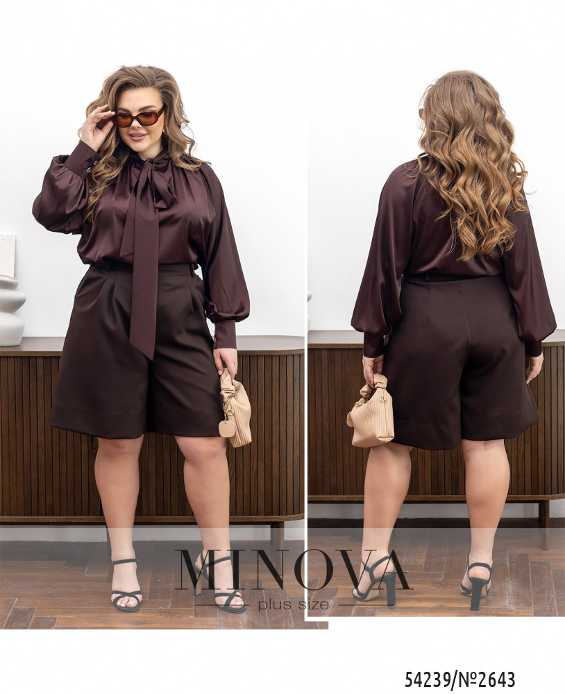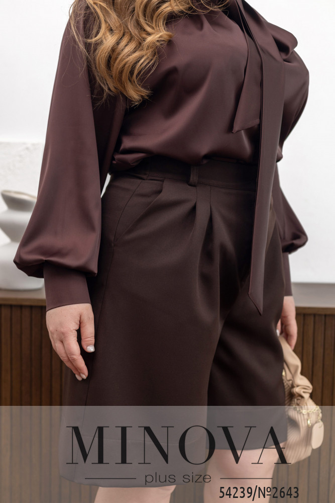 54-56 р-р: довжина шортів по внутрішньому шву 25см, довжина шортів по зовнішньому шву з урахуванням пояса 61см, ОТ - 90104см, ОС - 136см.