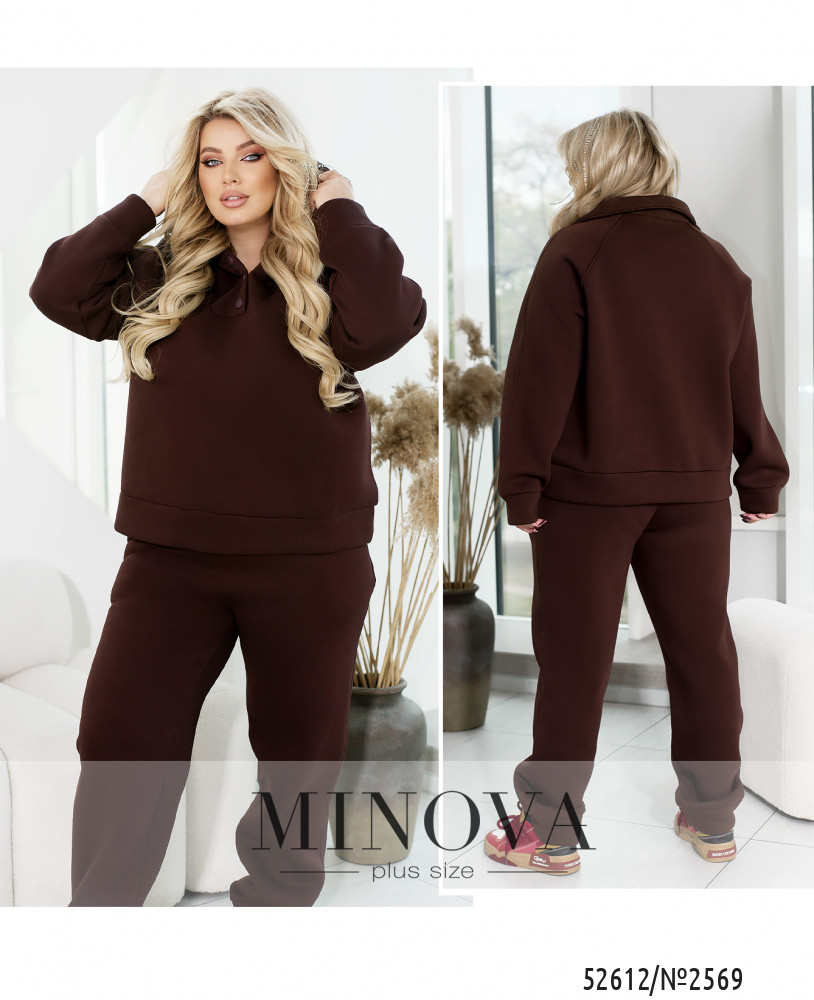 Теплий спортивний костюм із трьохнитки на флісі, який не кошлатиться, створений для максимального комфорту та затишку. Худі із капюшоном має дві кнопки на горловині, що надійно захищають від холоду та забезпечують додаткове тепло, прикриваючи шию. Довгі рукави з манжетами гарантують комфортну посадку та зберігають тепло. Штани з високою посадкою на гумці чудово підкреслюють талію, а манжети внизу забезпечують зручність та стиль. Модель також оснащена практичними боковими кишенями, які додають функціональності. Ідеальний варіант для прохолодної погоди та активного відпочинку.