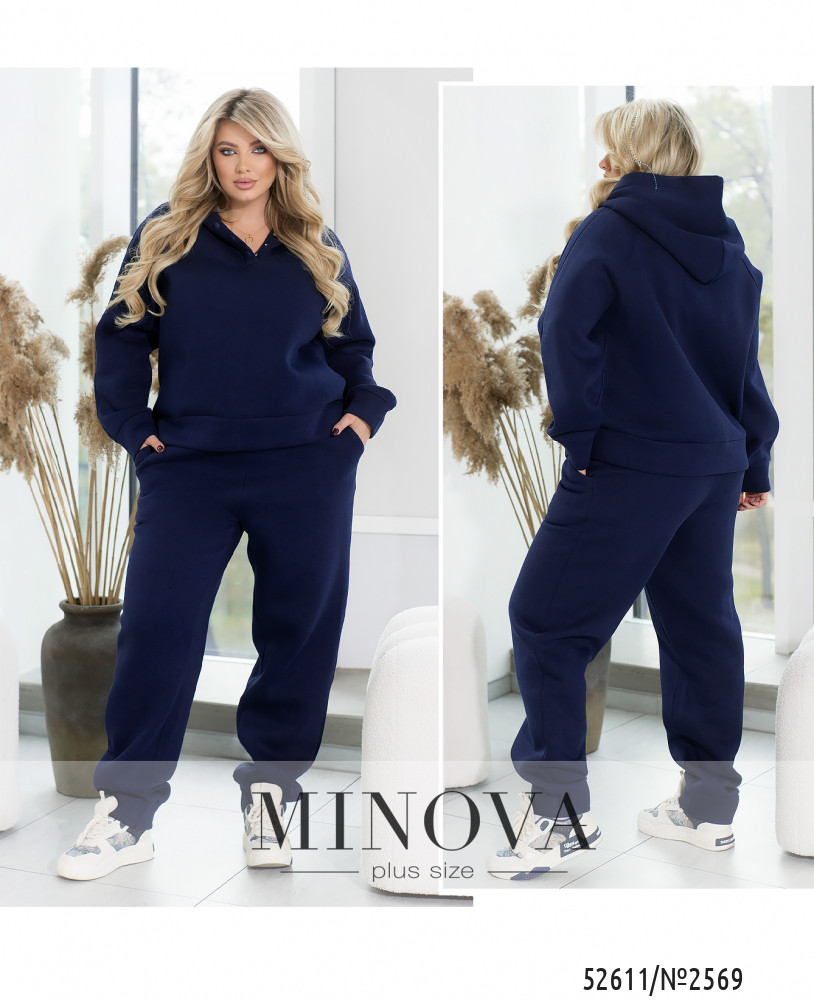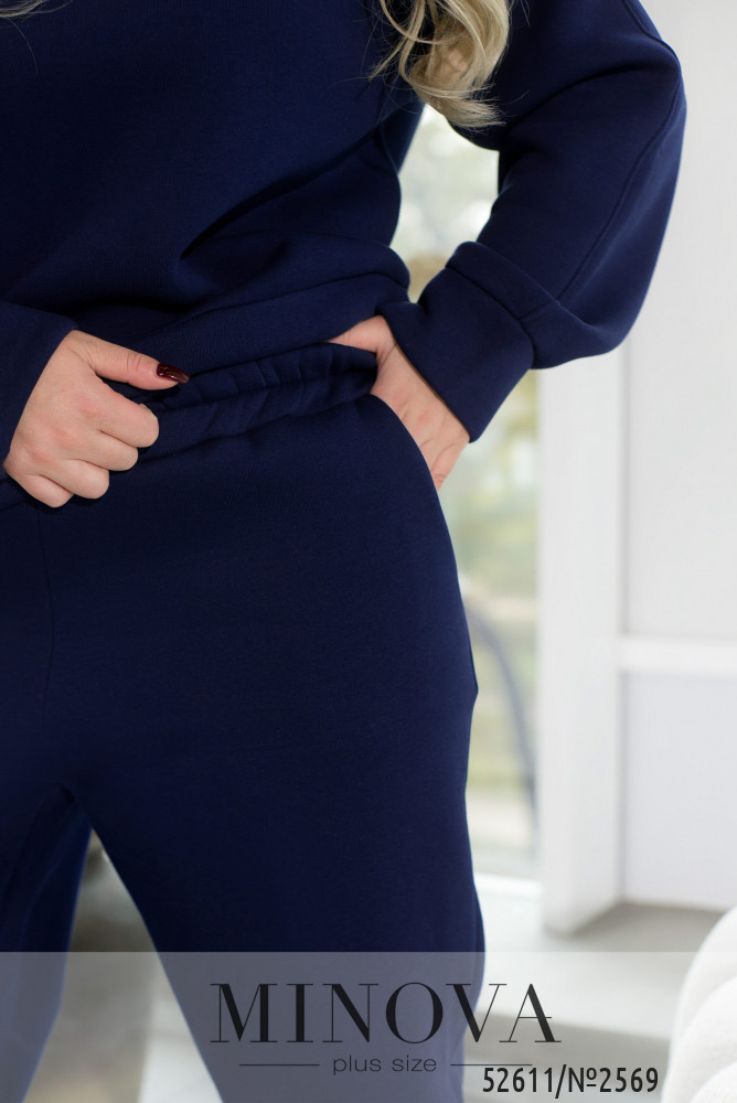 Теплий спортивний костюм із трьохнитки на флісі, який не кошлатиться, створений для максимального комфорту та затишку. Худі із капюшоном має дві кнопки на горловині, що надійно захищають від холоду та забезпечують додаткове тепло, прикриваючи шию. Довгі рукави з манжетами гарантують комфортну посадку та зберігають тепло. Штани з високою посадкою на гумці чудово підкреслюють талію, а манжети внизу забезпечують зручність та стиль. Модель також оснащена практичними боковими кишенями, які додають функціональності. Ідеальний варіант для прохолодної погоди та активного відпочинку.