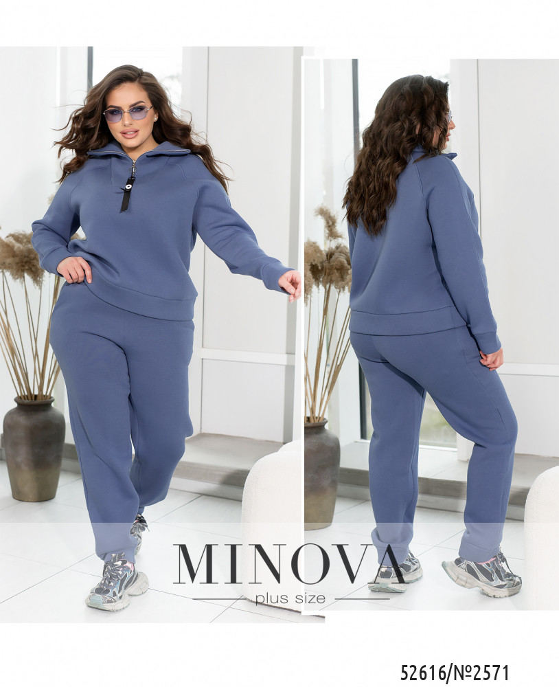 Спортивний костюм із трьохнитки на флісі, забезпечує ідеальне поєднання тепла та комфорту в прохолодну погоду. Худі має зручну змійку і високу горловину, що ефективно захищає шию від холоду. Довгі рукави з манжетами забезпечують комфортну посадку та зберігають тепло. Штани з високою посадкою на еластичній гумці підкреслюють фігуру та забезпечують максимальну свободу рухів. Манжети внизу штанів додають стильного вигляду та додаткового тепла. Бокові кишені роблять костюм практичним і зручним для щоденного носіння або активного відпочинку.