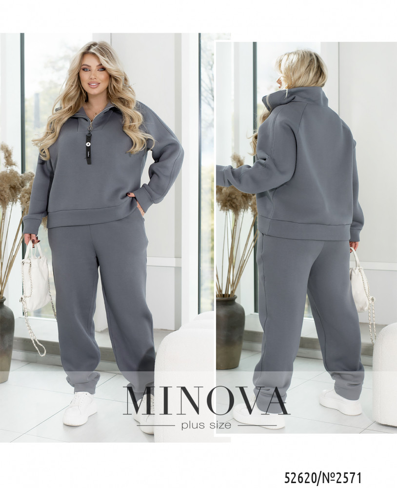 Спортивний костюм із трьохнитки на флісі, забезпечує ідеальне поєднання тепла та комфорту в прохолодну погоду. Худі має зручну змійку і високу горловину, що ефективно захищає шию від холоду. Довгі рукави з манжетами забезпечують комфортну посадку та зберігають тепло. Штани з високою посадкою на еластичній гумці підкреслюють фігуру та забезпечують максимальну свободу рухів. Манжети внизу штанів додають стильного вигляду та додаткового тепла. Бокові кишені роблять костюм практичним і зручним для щоденного носіння або активного відпочинку.