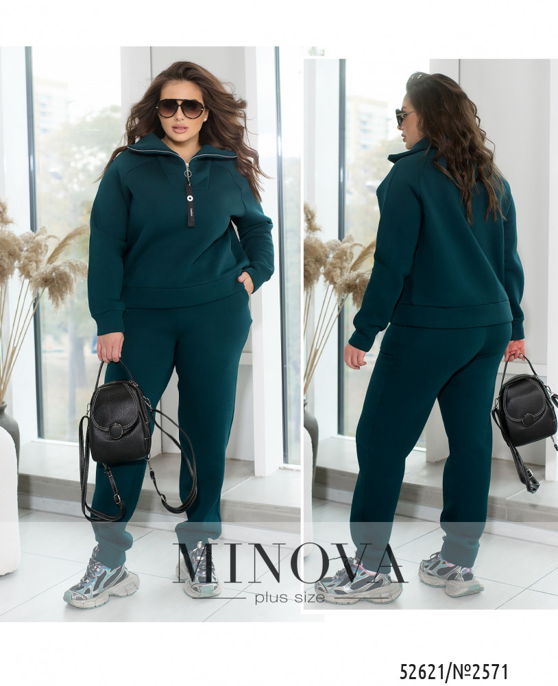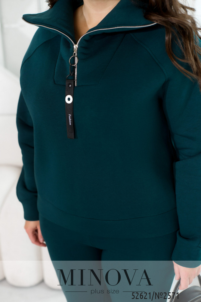 Спортивний костюм із трьохнитки на флісі, забезпечує ідеальне поєднання тепла та комфорту в прохолодну погоду. Худі має зручну змійку і високу горловину, що ефективно захищає шию від холоду. Довгі рукави з манжетами забезпечують комфортну посадку та зберігають тепло. Штани з високою посадкою на еластичній гумці підкреслюють фігуру та забезпечують максимальну свободу рухів. Манжети внизу штанів додають стильного вигляду та додаткового тепла. Бокові кишені роблять костюм практичним і зручним для щоденного носіння або активного відпочинку.