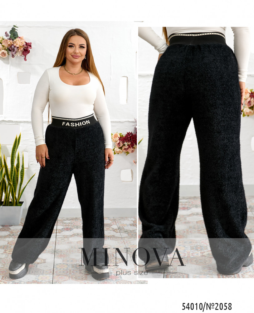 54-56 р-р: довжина брюк по внутрішньому шву 79см, довжина брюк по зовнішньому шву з урахуванням пояса 112см, ОТ - 78/100см, ОС - 122см.