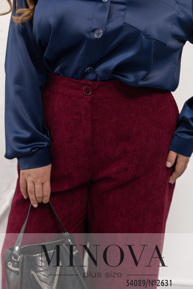 Ці класичні брюки з вельвету — стильне поєднання фактурності та комфорту. М’яка тканина з виразним рубчиком додає образу глибини та благородного вигляду, а стрілки формують витончений силует і візуально подовжують ноги. Модель доповнена зручними кишенями, що зберігають практичність без зайвого об’єму. Ззаду на талії — еластична вставка, яка забезпечує комфортну посадку та акуратно підлаштовується під фігуру. Брюки застібаються на ґудзик і блискавку, гарантуючи надійну фіксацію та бездоганний вигляд. Ідеальний варіант як для офісу, так і для стильних повсякденних образів. Легко комбінуються із сорочками, блузами чи жакетами, а також чудово виглядають як із підборами, так і з лаконічним взуттям на низькому ходу. Це ті брюки, які додають образу впевненості й шарму з першого погляду. Пояс НЕ входить в комплект.
