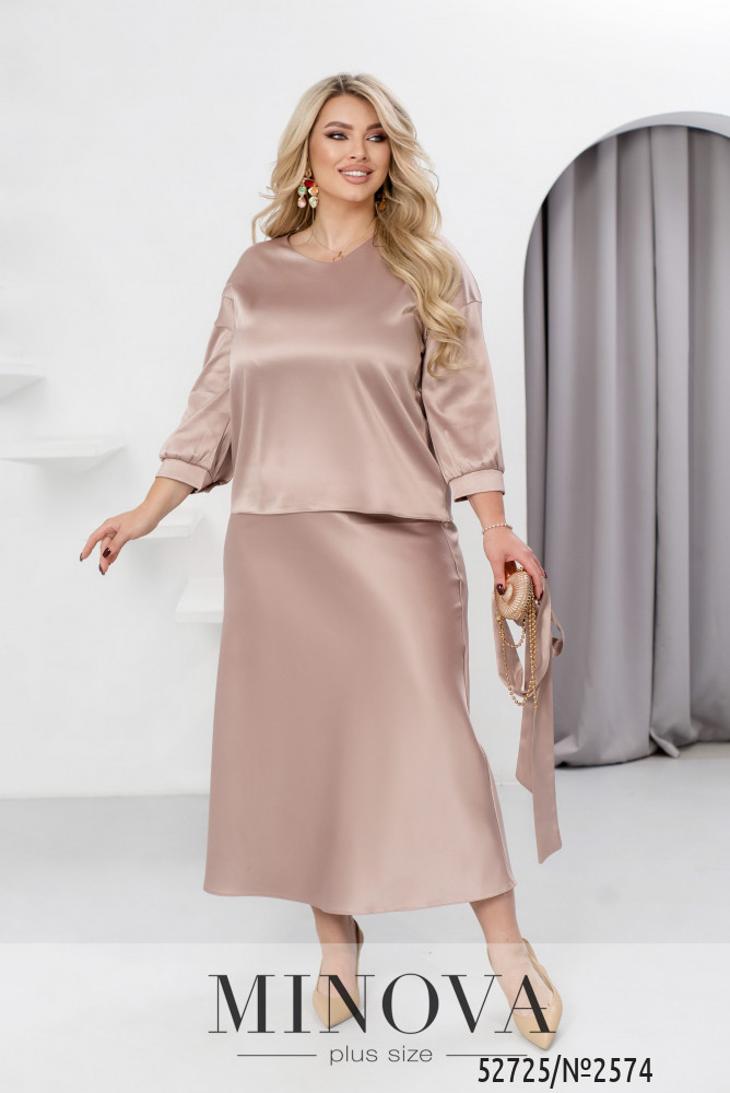 Елегантний святковий костюм зі спідницею, створений із розкішного костюмного шовку, стане вашим ідеальним образом для новорічних свят. Він поєднує витонченість і комфорт, роблячи вас зіркою будь-якої святкової події. Блуза з V-подібним вирізом створює акцент на зоні декольте, додаючи образу жіночності. Спущена лінія плечей та рукави довжиною 3/4 з манжетами на ґудзиках забезпечують стильний вигляд і зручність. Довга спідниця на резинці комфортно сідає по фігурі, а текстильний пояс, що входить до комплекту, дозволяє підкреслити талію та додає завершеності образу. Цей костюм створений, щоб ви відчували себе впевнено й виглядали розкішно під час зустрічі Нового року чи будь-якого іншого особливого заходу.