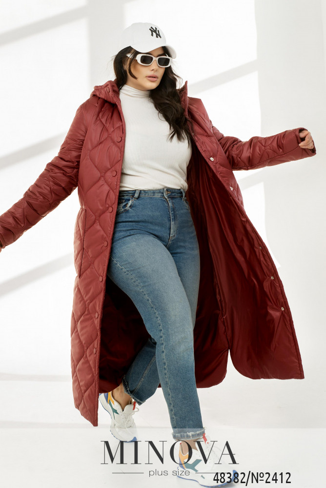 Довга стьобана куртка з пришивним капюшоном, високим коміром і довгими рукавами. Такий варіант курток майорить на стильних фешн показах вже другий рік та досі не втрачає своєї популярності. Куртка застібається на ряд кнопок спереду. Ми додали також накладні кишені на основній частині виробу. Така куртка легко поєднується з будь-якими елементами гардеробу, а також в ній буде однозначно тепло, адже ми додали наповнювач синтепон 200 та силікон. Доповніть образ високими черевиками та сумочкою і сміливо вирушайте у справах.