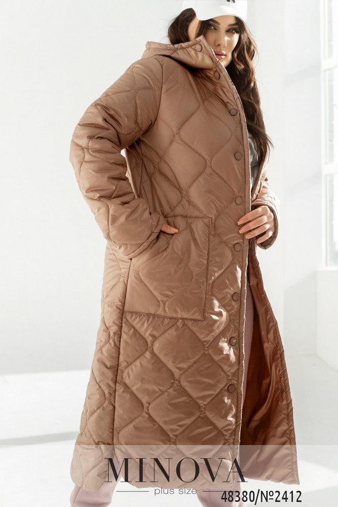 Довга стьобана куртка з пришивним капюшоном, високим коміром і довгими рукавами. Такий варіант курток майорить на стильних фешн показах вже другий рік та досі не втрачає своєї популярності. Куртка застібається на ряд кнопок спереду. Ми додали також накладні кишені на основній частині виробу. Така куртка легко поєднується з будь-якими елементами гардеробу, а також в ній буде однозначно тепло, адже ми додали наповнювач синтепон 200 та силікон. Доповніть образ високими черевиками та сумочкою і сміливо вирушайте у справах.