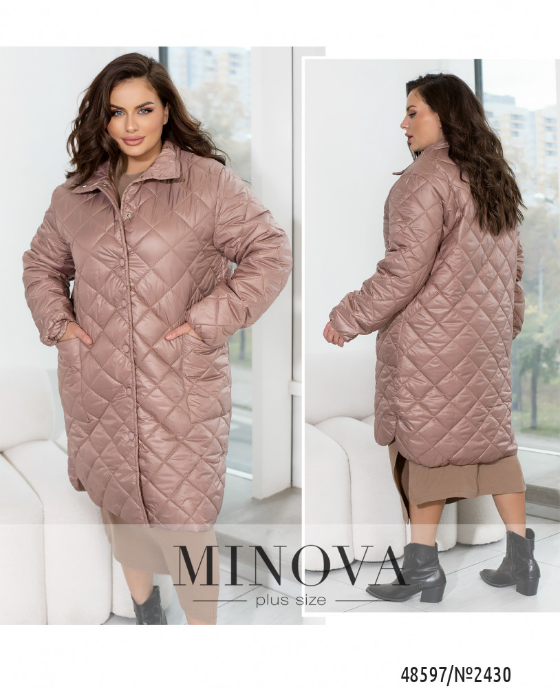 Орієнтовні заміри готового виробу: 46-48 р-р: довжина куртки 97/99см, довжина рукава від плечового шва 63см, обхват рукава 36см, ОГ - 108см, ОТ -108см, OC -114см. 50-52 р-р: довжина куртки 98/100см, довжина рукава від плечового шва 64см, обхват рукава 38см, ОГ - 116см, ОТ -116см, OC -122см. 54-56 р-р: довжина куртки 99/101см, довжина рукава від плечового шва 66см, обхват рукава 42см, ОГ - 124см, ОТ -124см, OC -130см. 58-60 р-р: довжина куртки 100/102см, довжина рукава від плечового шва 67см, обхват рукава 44см, ОГ - 132см, ОТ -132см, OC -138см. 62-64 р-р: довжина куртки 101/103см, довжина рукава від плечового шва 68см, обхват рукава 48см, ОГ - 140см, ОТ -140см, OC -146см. 66-68 р-р: довжина куртки 103/106см, довжина рукава від плечового шва 69см, обхват рукава 50см, ОГ - 148см, ОТ -148см, OC -154см.