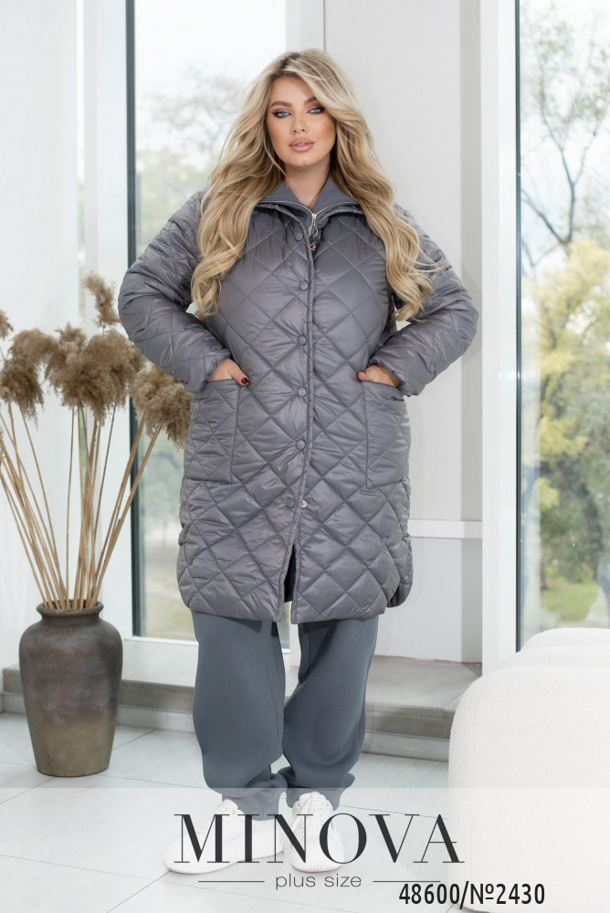 Ваша улюблена модель, вже доступна в новому амплуа. Стьобана куртка середньої довжини з високим коміром і довгими рукавами з гумкою на внутрішній частині. Виріб застібається на ряд кнопок на планочці. По боках об'ємні накладні кишені. Поділ заокруглено та доповнено бічними розрізами. Куртка легко поєднується як в образах спортивного стилю, так і в стилізаціях на кожен день. Доповнюйте улюбленим костюмом та кросівками та образ на будь-який випадок готовий!