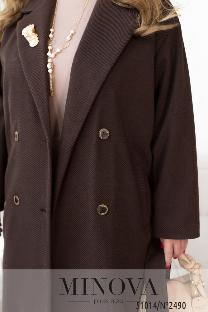 Стильне монохромне двобортне пальто oversize ідеально впишеться як в строгий діловий стиль, так і в актуальні образи в стилі casual. Воно буде ідельно поєднуватися з елегантними брюками, спідницями і сукнями, а також з комфортними спортивними костюмами та кросівками. Модель на підкладці доповнена довгими рукавами з приспущеною лінією плечей, відкладним коміром і зручними кишенями.