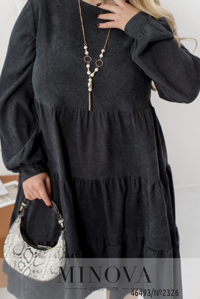 Повітряна сукня А-силуету, виконана з м'якого вельвету, дозволить вам навіть в прохолодну погоду і пору року виглядати жіночно і привабливо. Модель доповнена довгими рукавами з манжетами і застібкою на маленький гудзик під шиєю. Легкий подол, що складається з декількох шарів воланів, зробить ваш образ виразним і незабутнім.