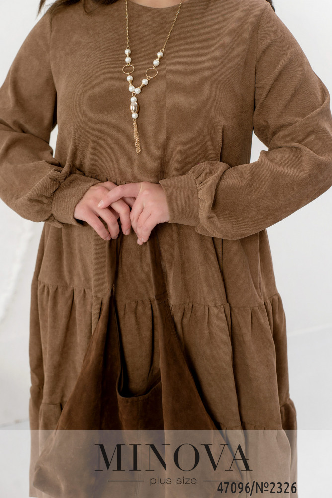 Повітряна сукня А-силуету, виконана з м'якого вельвету, дозволить вам навіть в прохолодну погоду і пору року виглядати жіночно і привабливо. Модель доповнена довгими рукавами з манжетами і застібкою на маленький гудзик під шиєю. Легкий подол, що складається з декількох шарів воланів, зробить ваш образ виразним і незабутнім.