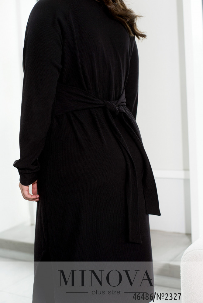 Мінімалістична жіночна сукня, виконана з м'якої ангорової тканини, здатна надати силуету вашої фігури м'якості і природності. Модель прямого силуету доповнена довгими рукавами "реглан" з манжетами, а також фігурним вирізом збоку внизу і трохи асиметричним низом, подовженим спереду. Родзинкою цієї сукні є текстильний пояс, вшитий в бокові шви, за допомогою якого ви можете змінювати свій образ, зав'язуючи його спереду або ззаду.