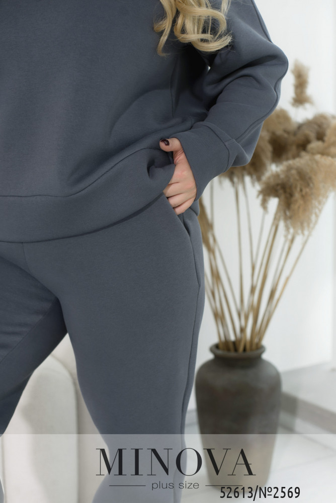 Теплий спортивний костюм із трьохнитки на флісі, який не кошлатиться, створений для максимального комфорту та затишку. Худі із капюшоном має дві кнопки на горловині, що надійно захищають від холоду та забезпечують додаткове тепло, прикриваючи шию. Довгі рукави з манжетами гарантують комфортну посадку та зберігають тепло. Штани з високою посадкою на гумці чудово підкреслюють талію, а манжети внизу забезпечують зручність та стиль. Модель також оснащена практичними боковими кишенями, які додають функціональності. Ідеальний варіант для прохолодної погоди та активного відпочинку.