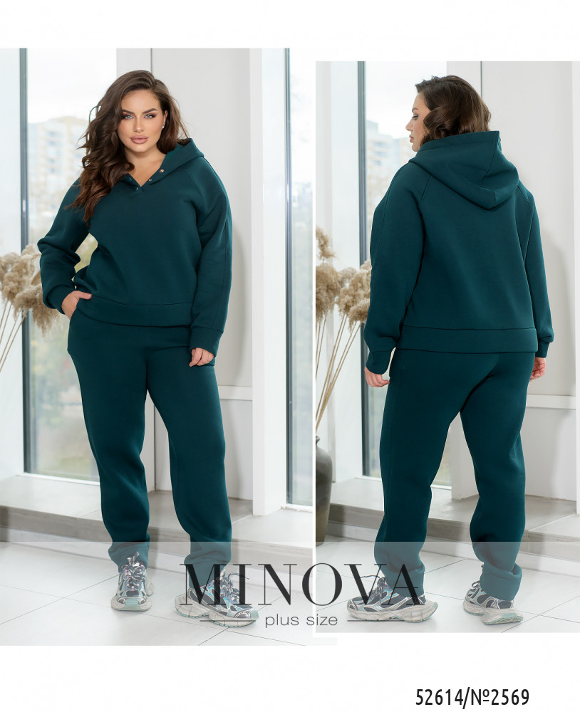 Теплий спортивний костюм із трьохнитки на флісі, який не кошлатиться, створений для максимального комфорту та затишку. Худі із капюшоном має дві кнопки на горловині, що надійно захищають від холоду та забезпечують додаткове тепло, прикриваючи шию. Довгі рукави з манжетами гарантують комфортну посадку та зберігають тепло. Штани з високою посадкою на гумці чудово підкреслюють талію, а манжети внизу забезпечують зручність та стиль. Модель також оснащена практичними боковими кишенями, які додають функціональності. Ідеальний варіант для прохолодної погоди та активного відпочинку.