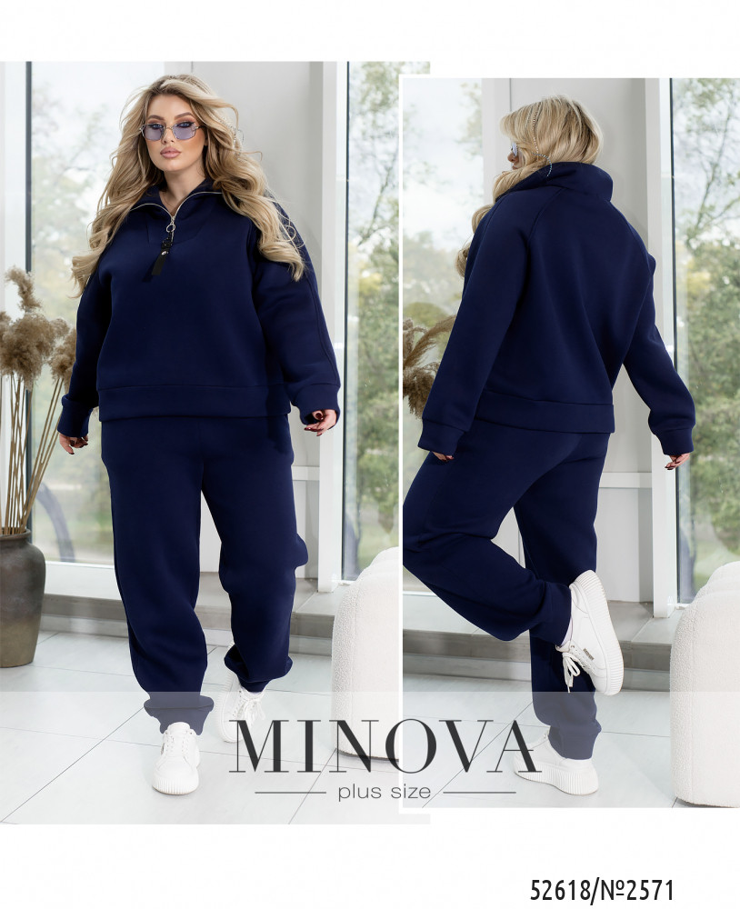 Спортивний костюм із трьохнитки на флісі, забезпечує ідеальне поєднання тепла та комфорту в прохолодну погоду. Худі має зручну змійку і високу горловину, що ефективно захищає шию від холоду. Довгі рукави з манжетами забезпечують комфортну посадку та зберігають тепло. Штани з високою посадкою на еластичній гумці підкреслюють фігуру та забезпечують максимальну свободу рухів. Манжети внизу штанів додають стильного вигляду та додаткового тепла. Бокові кишені роблять костюм практичним і зручним для щоденного носіння або активного відпочинку.