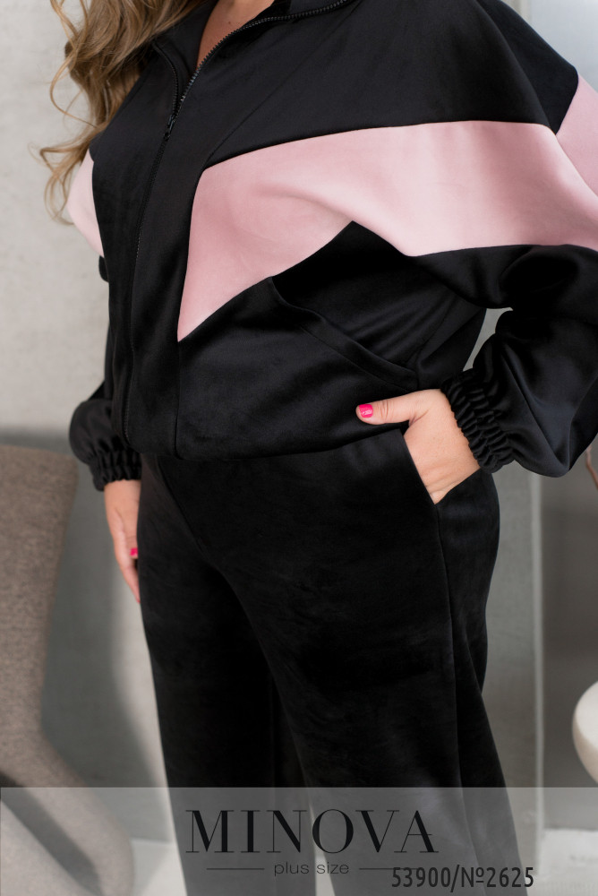 Ми презентує велюровий костюм, який поєднує трендовий стиль і абсолютну зручність! Кофта вільного крою «летюча миша» з горловиною-стійкою та рукавами на еластичних манжетах оберігає тепло і дарує абсолютну свободу рухів. Зручна застібка-блискавка та практичні кишеньки додають функціональності кожному дню. Штани прямого вільного крою з високою посадкою та еластичною талією і бічними кишеньками роблять образ завершеним і неймовірно комфортним. Стиль, зручність і трендова велюрова текстура — все в одному костюмі! Пояс НЕ входить в комплект.