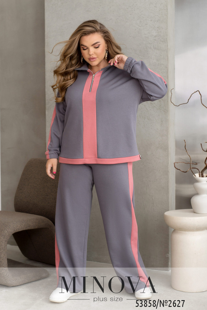 Твій повсякденний стиль і комфорт — це наш новий костюм.Кофта з акцентними вставками підкреслює модний образ, невеликий комір-стійка та блискавка додають зручності, а рукава зі заниженою лінією плеча і затяжки знизу дарують ідеальну посадку. Штани вільного крою з акцентними вставками, еластичною талією та бічними кишеньками завершують образ, роблячи його зручним для будь-якого дня. Тренд, свобода рухів і практичність — все в одному костюмі!