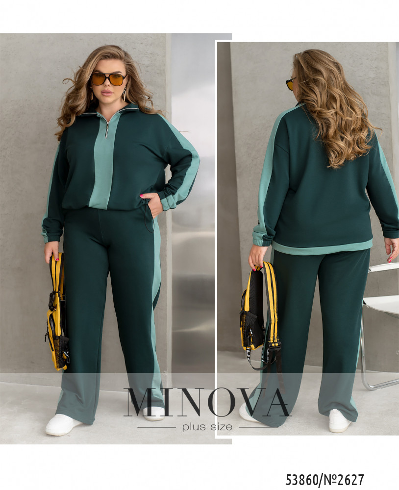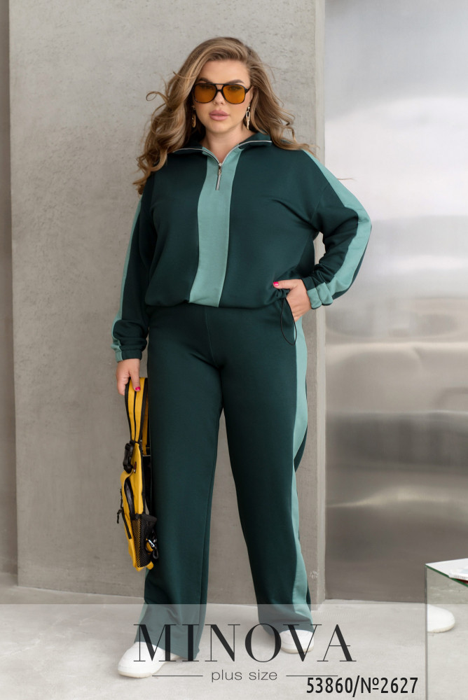 Твій повсякденний стиль і комфорт — це наш новий костюм.Кофта з акцентними вставками підкреслює модний образ, невеликий комір-стійка та блискавка додають зручності, а рукава зі заниженою лінією плеча і затяжки знизу дарують ідеальну посадку. Штани вільного крою з акцентними вставками, еластичною талією та бічними кишеньками завершують образ, роблячи його зручним для будь-якого дня. Тренд, свобода рухів і практичність — все в одному костюмі!