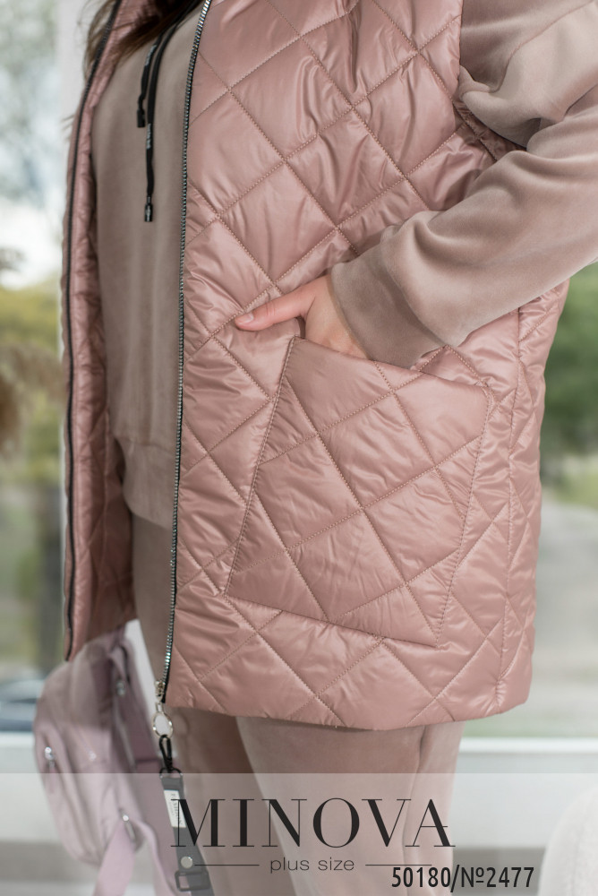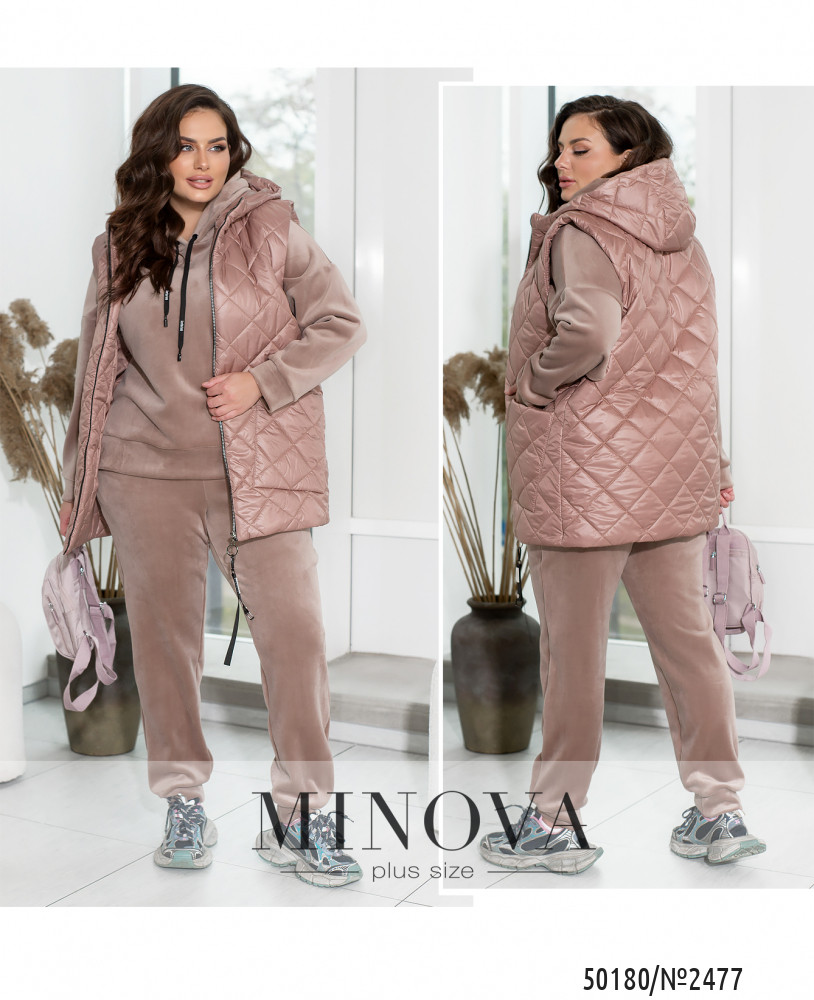 Зустрічайте наш універсальний костюм трійка, створений для стильних і зручних образів у прохолодну погоду. Комплект складається з жилетки з капюшоном та накладними кишенями, кофти зі спущеними рукавами та капюшоном зі шнурком, а також прямих штанів з середньою посадкою і кишенями по боках.Жилетка додає практичності та стилю завдяки капюшону і накладним кишеням. Кофта з капюшоном і спущеними рукавами створює невимушений і затишний образ. Прямі штани з середньою посадкою забезпечують комфорт і стиль. Вони практичні завдяки кишеням по боках і низу на резинці. Цей костюм — вибір активних жінок, які цінують якість і стиль.Ідеальний варіант, для жінок, які поспішають та полюбляють бути в комфорті. Доповніть образ кросівками чи об'ємними чоботями
