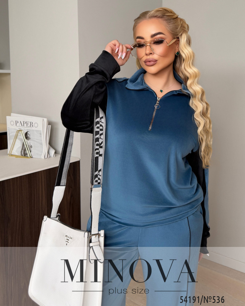 Виконаний із приємного до тіла велюру з делікатним благородним переливом, який красиво грає при русі та додає образу статусності. Тканина щільна, але комфортна, добре тримає форму й виглядає акуратно протягом усього дня.